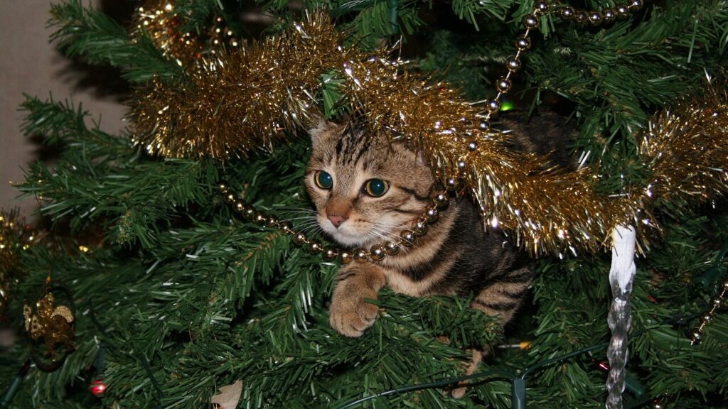 Los perros pueden botar el árbol sin querer mientras juegan o pasan cerca, pero los gatos representan el mayor riesgo: muchos trepan, muerden ramas o intentan derribar adornos. Según BluePearl Pet Hospital, cerca del 10% de las urgencias navideñas involucran accidentes con el árbol.